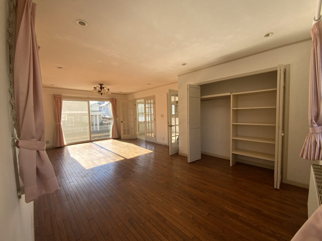 リビングです!まるで外国のドラマに出てきそうですね♪インテリアがお好きな方にはたまらないのではないでしょうか?収納もばっちりなので生活感が出そうなものはクローゼット内に全てしまうことができます。